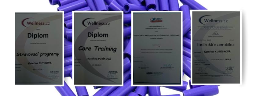 Po 2. porodu jsem ale chtěla zpět a tak jsem si udělala trenérské zkoušky - aerobní cvičení, trenér core a po 3. porodu i akreditaci na jumprope ( švihadla).